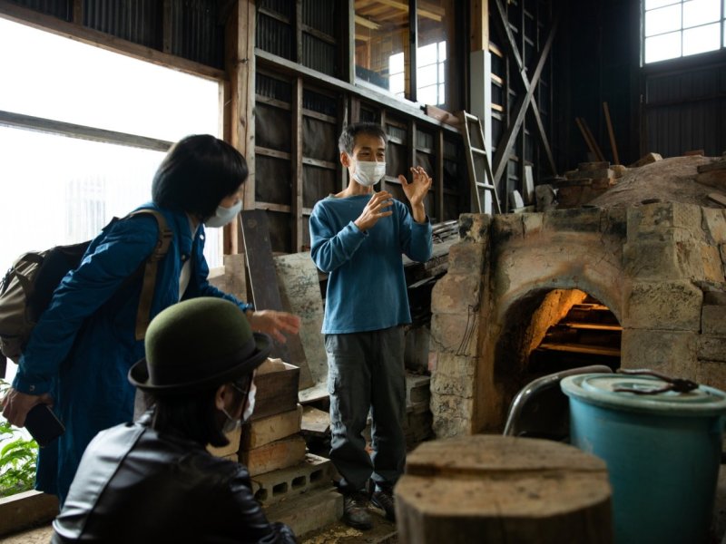 *1 As you walk nearby, you will see a large chimney on an old-fashioned wood-fired kiln.