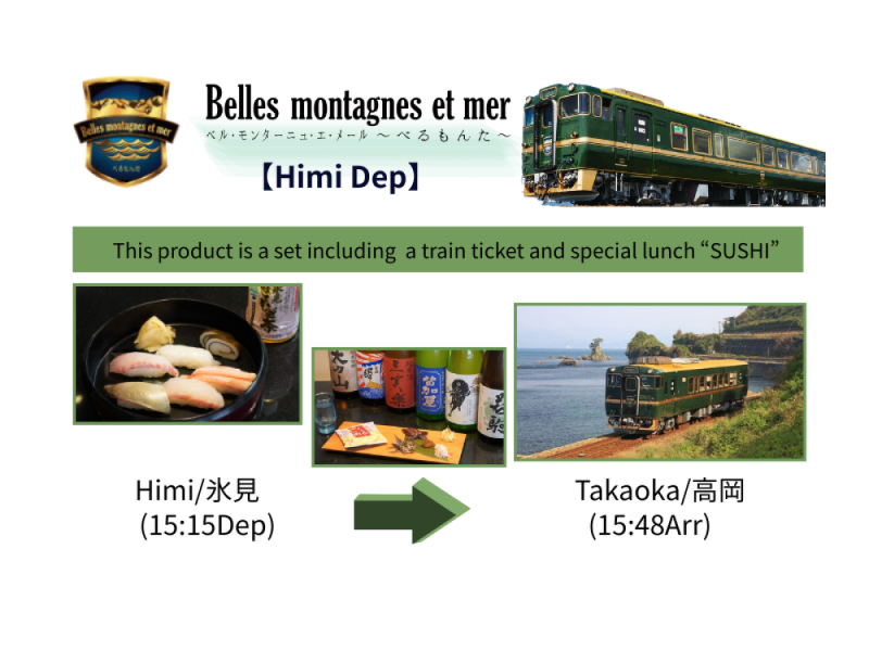 【West Japan Sightseeing Train】Belles montagnes et mer (Himi Dep 11:08 or 15:15) Sushi included