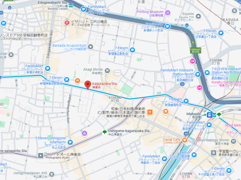 Outside the ticket gate Exit "1" (Akagi Shrine side), Kagurazaka Station (T05), Tokyo Metro Tozai Line